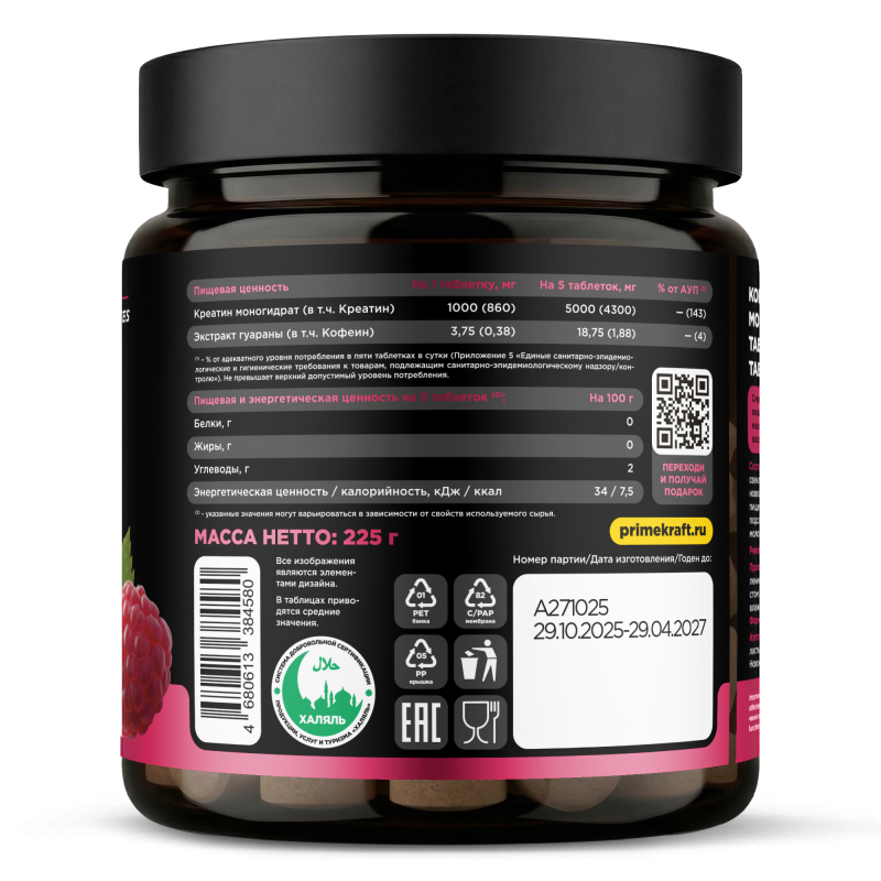 • Приятный вкус спелой малины, нейтрализующий естественную горчинку креатина;